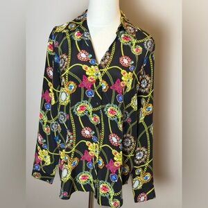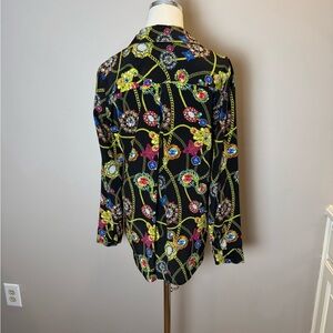 L’Agence blouse, Nina silk shirt, luxury designer top, 100% silk blouse, Poshmark trending, Depop vintage glam, statement print blouse, black jewel silk, eBay fashion, preowned designer, celebrity style, boho luxe top, elevated basics, Y2K glam, high fashion resale