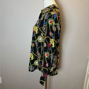 L’Agence Nina Jewel Printed Blouse In Black Multi Jewels 100% silk