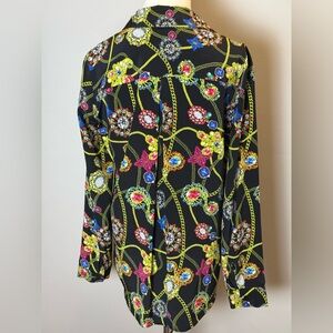 L’Agence blouse, Nina silk shirt, luxury designer top, 100% silk blouse, Poshmark trending, Depop vintage glam, statement print blouse, black jewel silk, eBay fashion, preowned designer, celebrity style, boho luxe top, elevated basics, Y2K glam, high fashion resale