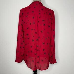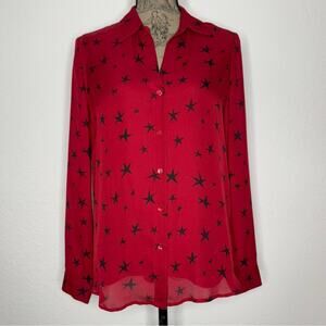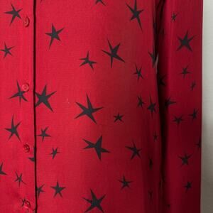 L'Agence Nina Red Star Print Button Down Top Silk Blouse Women’s Small