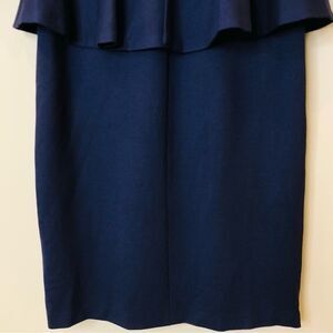 L'Agence Ophelia Off the Shoulder Peplum Bodycon Midi Dress 50s Formal Navy S