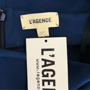 NWT Womens LAgence Ophelia Off-the-Shoulder Peplum Bodycon Dress Midi Navy Blue Small