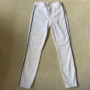 High Rise Skinny, white jeans with blue strips on the side