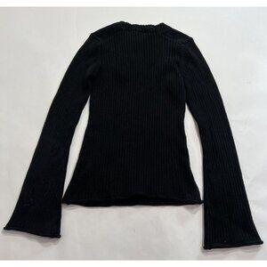 Description from retailer: This sultry cutout top is balanced with wide ribbing and gently flared cuffs for an overall feminine effect. Ribbed roundneck Long sleeves Rolled cuffs and hem Pullover style