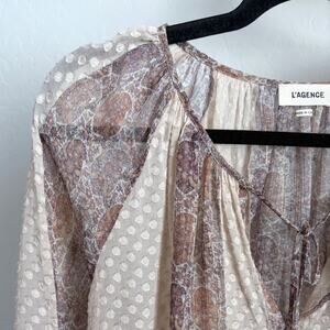 L’Agence Pearl Raglan Boho Peasant Top Medium Sheer Silk Blend Feminine Dainty