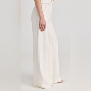 L'Agence Pilar Wide Leg trouser linen Pant cream metallic gold pin stripe 2. NWT