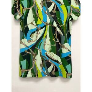L’Agence Ressi Sea Green Equestrian Belt Swirl Colorful Print Luxury T-Shirt Med
