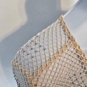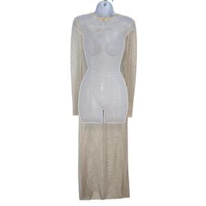 L'Agence Sara Mesh Cover-Up in Champagne Crystals Keyhole Cut Out Small NEW