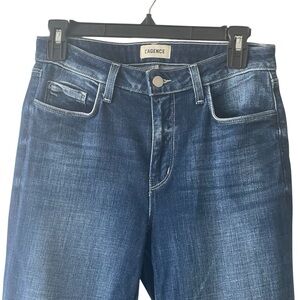 L’Agence Sera High Rise Flared Jeans Distressed Hem Med Blue Wash Women Sz 27