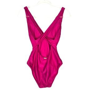 L'Agence Shimmer Solids Lisa Plunge One-Piece Swimsuit Fuchsia Small NEW