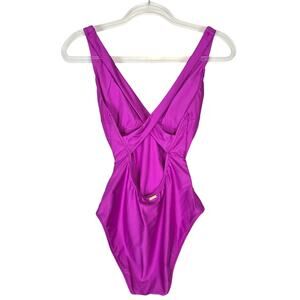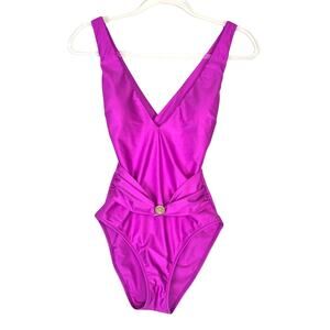 L'Agence Shimmer Solids Lisa Plunge One-Piece Swimsuit Orchid Pink Small NEW