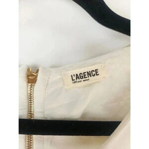 L'Agence Short Dress White Twisted High Neck Size 6. Pre owned in good condition. This would benefit from a dry cleaning. There is one spot on the right shoulder strap, and the neckline looks a little dirty. Measurements are in the photos. Lining is 100% silk.