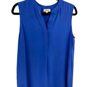 small spot of discolor shown in photo L'Agence Morocco Sleeveless Silk Dress Blue Size Small, V-neck 1/4 button