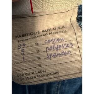Details: Raw hem, stretch, 5 pocket, medium/dark wash with some intentional fading, high rise, cropped