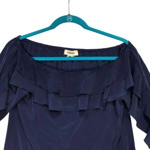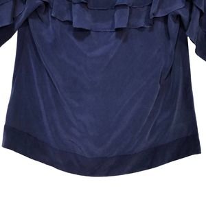 L'Agence Sz XS Monroe Off Shoulder Silk Blouse Blue Ruffle Pullover 4677CD1 Top