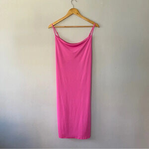 Key words/notes: Barbie core, Barbie pink, cocktail, midi length, stretch fabric, wedding guest, girls night out, event