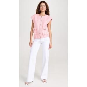 L'Agence Uma Vest in Sugar Plum. Size L / Large. Features round neckline, sleeveless, flap waist pockets, elasticized hem, button closures, sequin embellishments. 55% cotton, 45% polyester. Style 1706PNX. Excellent condition, no flaws.