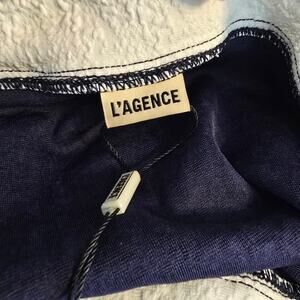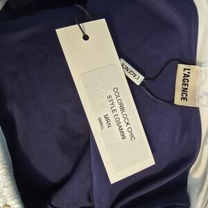 L'Agence Vanessa High Waist Bikini Bottom Marine Blue White Gold Buttons S NEW