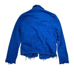 L'Agence Women's Blue Cobalt Raw Hem Stretchy Janelle Denim Jacket Sz Small