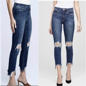 L'Agence High Line Skinny Jeans in Cupertino Dark Wash, Women's size 24 with an inseam of 27. They are $299 retail. The fit is high rise and the denim is stretchy, but still has plenty of compression strength for shaping. The style number is 2427 and the denim composition is 93% cotton, 5% polyester, 2% spandex. These jeans are stylish and so cute on. I absolutely love this brand, the quality, and how they fit.