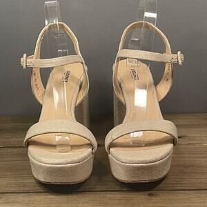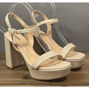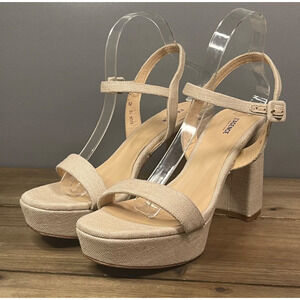 L'Agence Women's Odila Platform Heels Size 10 / 40 Linen Ecru Ankle Strap