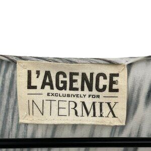 L’Agence x Intermix Blouse Long Sleeve Silky V-Neck Mixed Print Black Ivory | 0