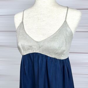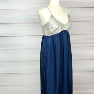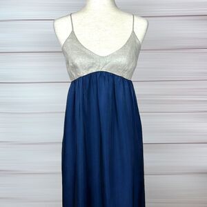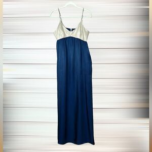 L'Agence Empire Waist Maxi Dress Navy Shiny Beige Scoop Neck Spaghetti Strap M