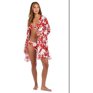 L'Agence Women's Rouge Meghan Ikebana Tie Front Dress Swim Cover Up Size Large N