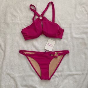 L'Agent Agent Provocateur Bikini 2Pcs Swimsuit S Adrina Pink Cut Out Sexy Cheeky