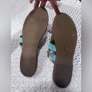 LAiik Flat Leather Womens Sandals Greece Sz 41US 11 Turquoise Blue