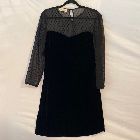 L'Altra Moda Black Dress Polka Dot Mesh Vintage 90 Velvet Cocktail Holiday
