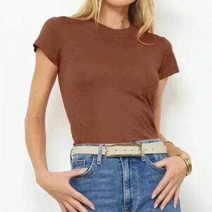 LAmade Classic Crew Neck Tee Short Sleeve Dark Brown Size Small NWOT Stock photo for style reference only. Color is a dark brown.