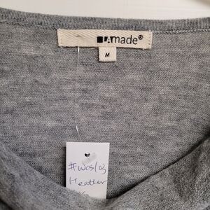 LAmade heather gray cowl neck pleated shoulder sleeve sweater knit top