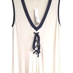 NWT LAmade Jersey Tank Dress.size Small. Ivory With Blue Lace Up Placket. Blue Neckline. Yellow Hem. Such A Cute And Easy Summer Dress. No Care Tag.