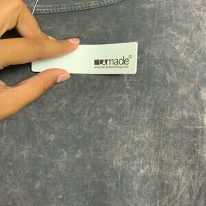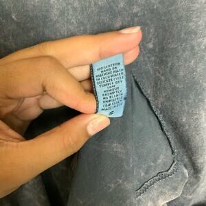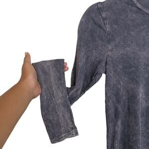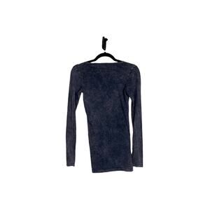LAmade Long Sleeve Scoop Neck Distressed Washed Cotton Tee Black Beige Size S