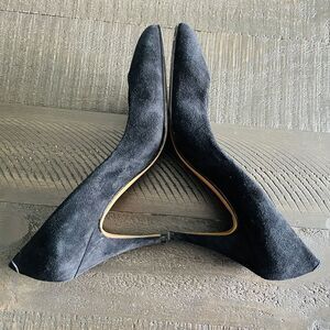 L’Amore Black Suede Pointed Toe Pumps Parisian Chic Women’s Size 8.5