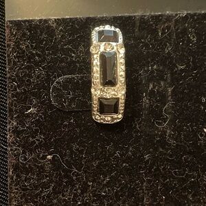 Chic L'Amour earrings with a geometric black and silver design. Ideal for a stylish look.
