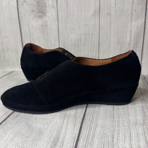 L’Amour Des Pieds Beziers Black Suede Slip-On Low Wedge Shoes Size 6M
