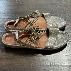 L’Amour Des Pieds Gold Silver Snake Print Leather Sandals Size 7.5 Women
