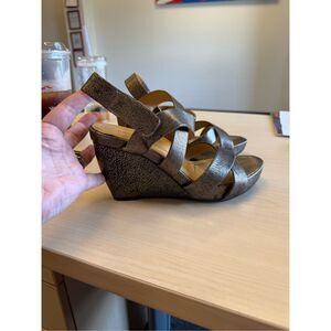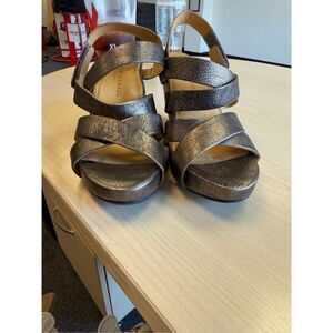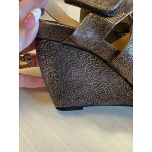 L’Amour Des Pieds Irene Bronze Leather Wedge Sandals sz 8.5 EUC