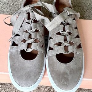 🐕L’Amour Des Pieds Kanav Taupe Suede Cutout Sneakers - Size 8.5 - NWT🐕