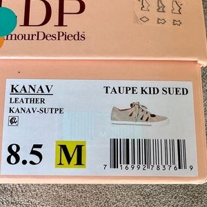 🐕L’Amour Des Pieds Kanav Taupe Sneakers. Has cutouts, thick shoelaces with taupe stripe on the sides. Beautiful! Size 8.5. NWT. Comes with dust bag and box. Thanks for looking.