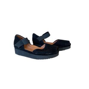 L&Amour Des Pieds Womens Black Leather Suede Peep Toe Amadour Sandal Size 9