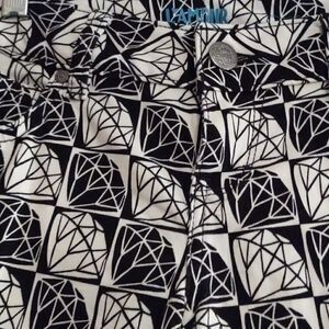 L'Amour brushed denim size 3 legging, zip front, pockets front and back, black and white diamond pattern, super soft material excellent condition
