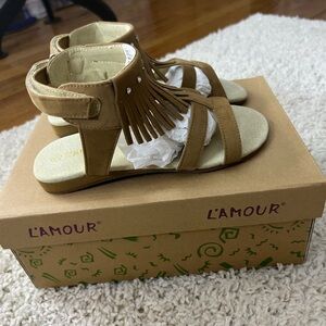 L'Amour Kids Size 1 Brown Fringe Sandals NIB