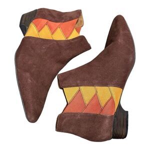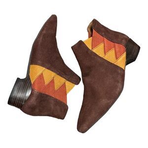 L’AmourDesPieds suede Chelsea booties brown mustard and burnt orange fit…