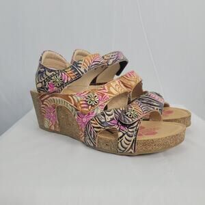 L'Artiste Bonvoyage Sandals size 38 Navy Multi Leather Hand Painted Floral Boho
