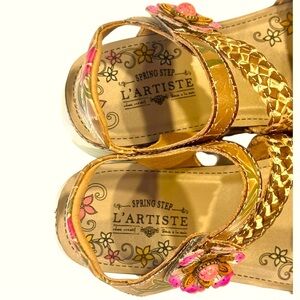 Embrace warm weather with the Brissa sandal from L'Artiste by Spring Step! This classic pair features a casual silhouette, complete with a dual hook and loop strap for a secure fit. Decorated with colorful butterfly and floral prints for a playful flair.