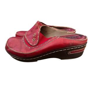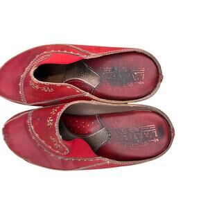 L’Artiste By Spring Step Women's Red Leather Chino Slip-On Clogs Size 40