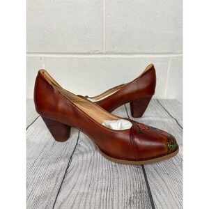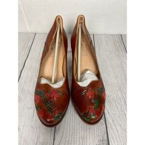 L'Artiste Floral Embossed Leather Pumps Heels Camel Multi Size 9.5-10 EU 41